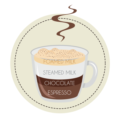 For all you chocolate lovers out there, you’ll fall in love with a mocha (or maybe you already have). The mocha is a chocolate espresso drink with steamed milk and foam.